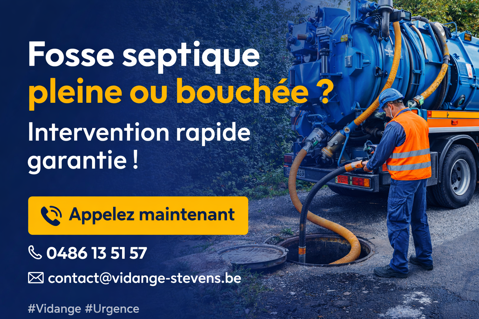 Fosse septique bouchée ou débordement ? Intervention rapide 24h/24 à Bruxelles et en Wallonie. Contactez Vidange Stevens pour une solution efficace et immédiate.